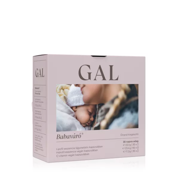 Összetevők: GAL Babaváró® Lipofil esszencia lágyzselatin kapszulák (30 db): extra szűz olívaolaj, D-alfa-tokoferol és vegyes tokoferolok, MSPO-minősített vöröspálmagyümölcs-kivonat, retinil-palmitát, görög zsálya-kivonat, fillokinon, 2% menakinon-7-tartalmú olívaolaj, kolekalciferol; kapszulahéj (zselatin, nedvesítőszer: glicerin, víz, karamell, édesítőszer: szteviol-glikozidok sztívialevél-kivonatból, kristályvanillin).